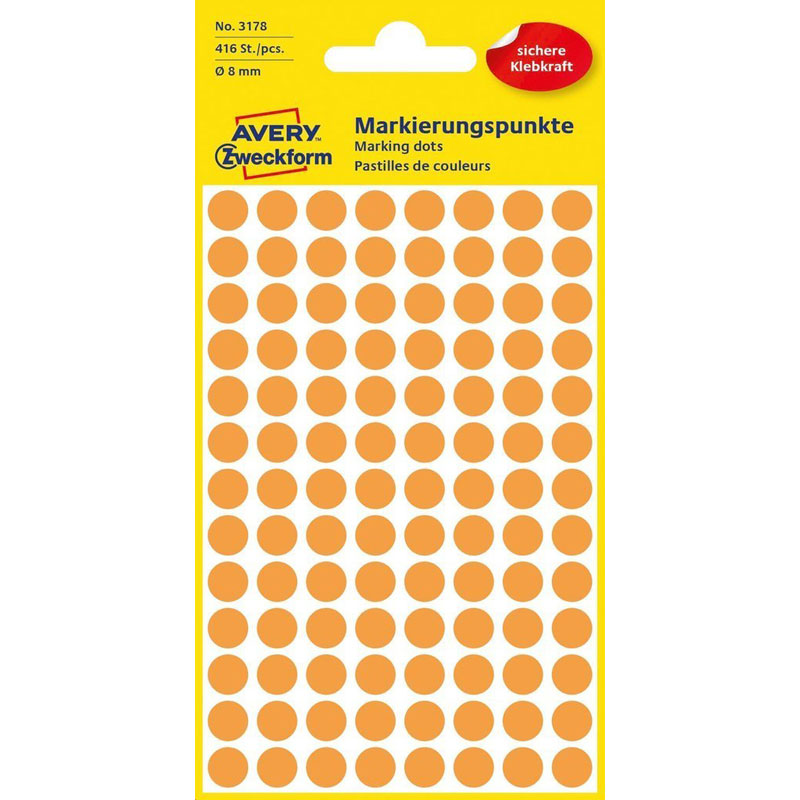 Вы отмечаете цветом на вашей стене или на рабочем столе в офисе особенные даты, события, мероприятия? Возможно, разным цветом вы выделяете дни отпуска, выходные и праздничные дни, или маркируете документы. Например, красным цветом важные события, зеленым – личные заметки. Круглые этикетки-точки от Avery Zweckform – отличное решение для профессиональной маркировки в рабочем планинге, на картах. Большой выбор размеров и цветов.