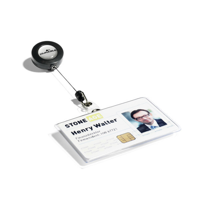 Рулетка с держателем для бэйджа 54 х 85 мм (горизонтальный). Рулетка вытягивается на 80 см. Крепится при помощи металлического клипа на поясе или к нагрудному карману. В упаковке: 10 шт