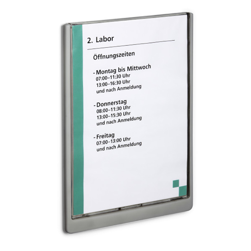 Особенно подходит для размещения информации в крупных учреждениях, например в школах и университетах, больницах, торговых центрах итд. Крепится с помощью саморезов или клейких подушек. Монтажные наборы в комплекте.