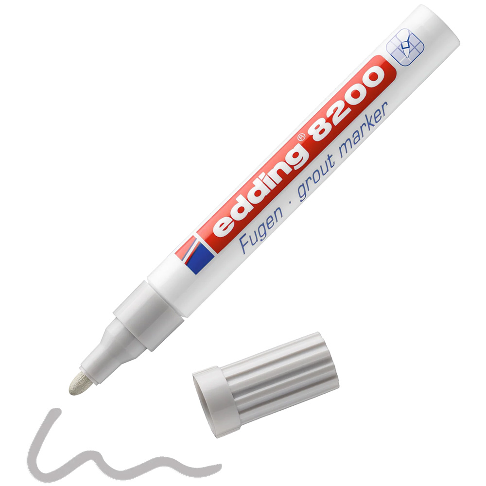 Маркер edding 8200 с водостойкими и неразмазывающимися чернилами доступен в цветах, чаще всего используемых для обработки кафельных швов: в серебряно-сером и белом. Маркер поставляется с 3 сменными наконечниками, что позволяет без труда, точно и аккуратно продолжить восстановительные работы, даже если один из наконечников износится.