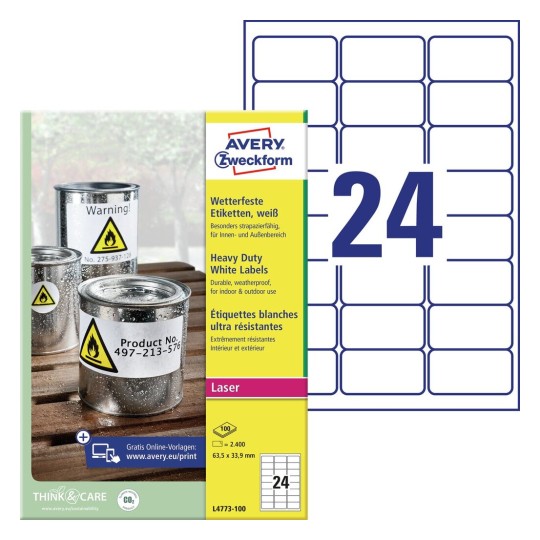 Особо прочные этикетки устойчивы к воздействию загрязняющих веществ, влаги, перепадов температуры (от -20 °C до +80 °C).