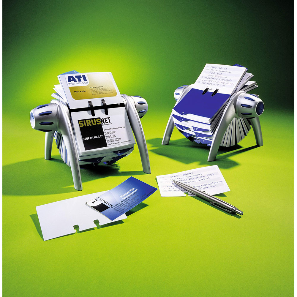 Вращающаяся визитница со съемными карманами. Комплектуется 200 двусторонними карманами для 400 визиток и буквенным разделителем.