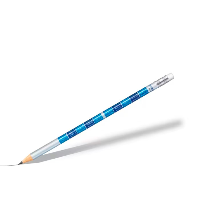 Корпус карандаша окрашен в серебристый цвет с нанесенной таблицей умножения.