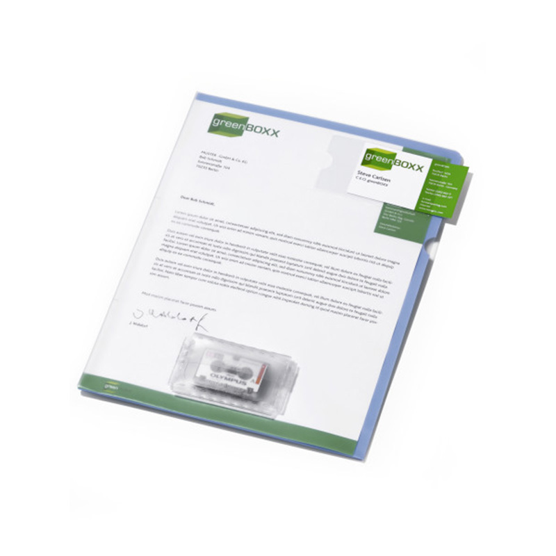 Папка пластиковая с прозрачной верхней и цветной задней обложкой. Карман на верхней обложке для кассеты. Окно для маркировки.